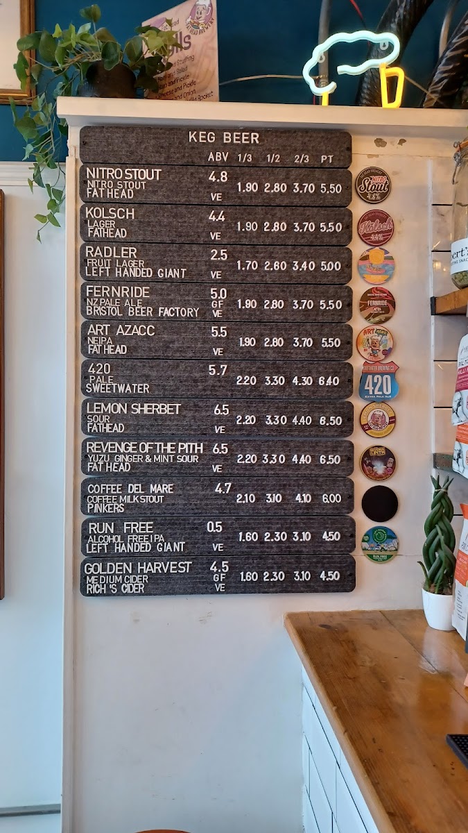 The atmosphere is delightful—a snug little taphouse adorned with quirky decor, such as lightbulbs connected by curves and fun signs that set the mood for a relaxed yet spirited outing. Guests like K. Peake have noted the welcoming and talkative staff, which enhances the overall experience, ensuring that every patron feels right at home as they savor their drink.